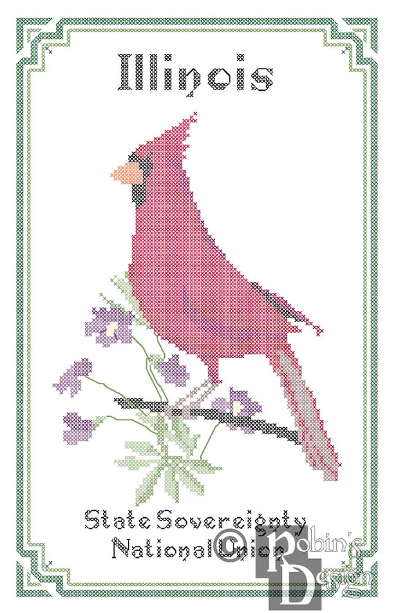 Illinois State Bird Flower And Motto Cross Stitch Pattern Pdf Etsy